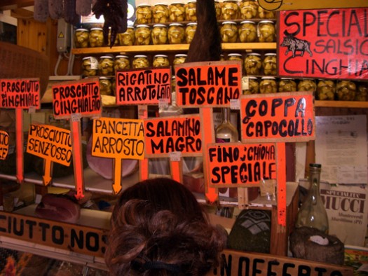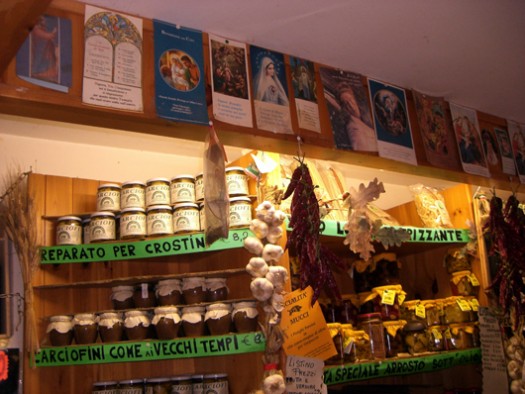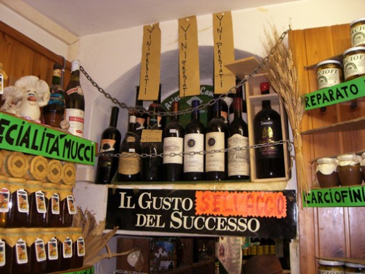 Die lustigen Brüder Mucci in Monteverdi Marittima in der Toskana betreiben ihr Geschäft vorbildlich. Auf knappen 60 Quadratmetern zeigen sie alles, was das kulinarisch interessierte Herz begehrt. Die Beiden beliefern zahlreiche Restaurants und Trattorias der Umgebung. Jeder kennt jeden, so scheint es im Laden. Es werden kleine Geschichten erzählt, beste Rabattverhandlungen geführt. Zusatzgeschäfte mit Spaß und Lust generiert. Das Büro ist einen Meter breit und 3 Meter hoch. Überall Preisschilder, Heiligenfiguren, Lebensmittel vom Feinsten. Bon appetito. Macht Appetit auf bestes Marketing mit Herz und Hirn.