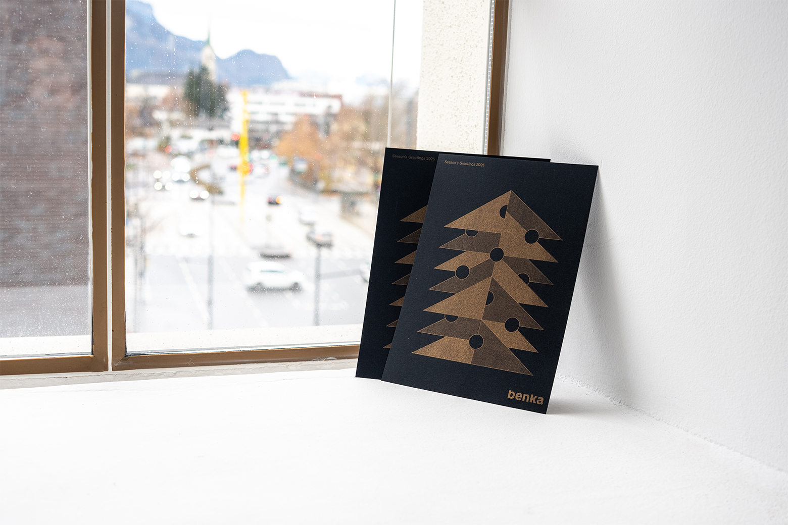 Manchmal sind es auch die ganz kleinen feinen Dinge, die uns Gestalter*innen freuen. Tim Siegel hat für Benedikt Kaiser Benka diese wunderschön, schlichte Weihnachtskarte entworfen. Sehr fein.