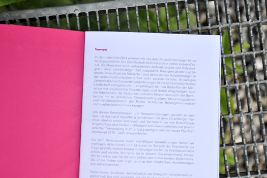 Der 5. und letzte aus der Jahresberichtserie mit FotografInnen wurde mit Bildern von Petra Rainer gestaltet. Kommendes Jahr werden die Berichte für Pro Mente V mit Illustrationen bereichert. Wir freuen uns schon darauf.