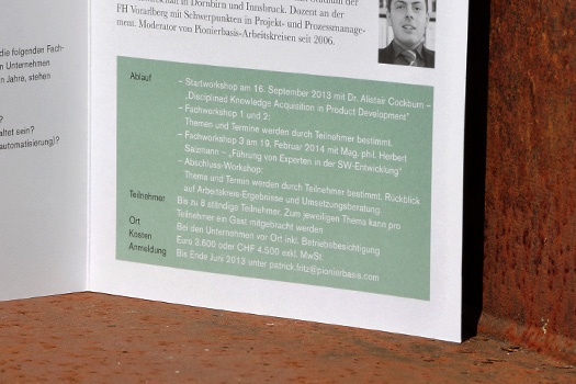Über den Tellerrand schauen. Knowhow-Transfer, offen und gegenseitig. Neu denken, verändern und weiterkommen. Mit Martin Meusburger und Patrick Fritz fanden wir offene und weitsichtige Partner. Für das neue Corporate Design und die Kommunikation der Arbeitskreise haben wir das Erscheinungsbild erarbeitet.