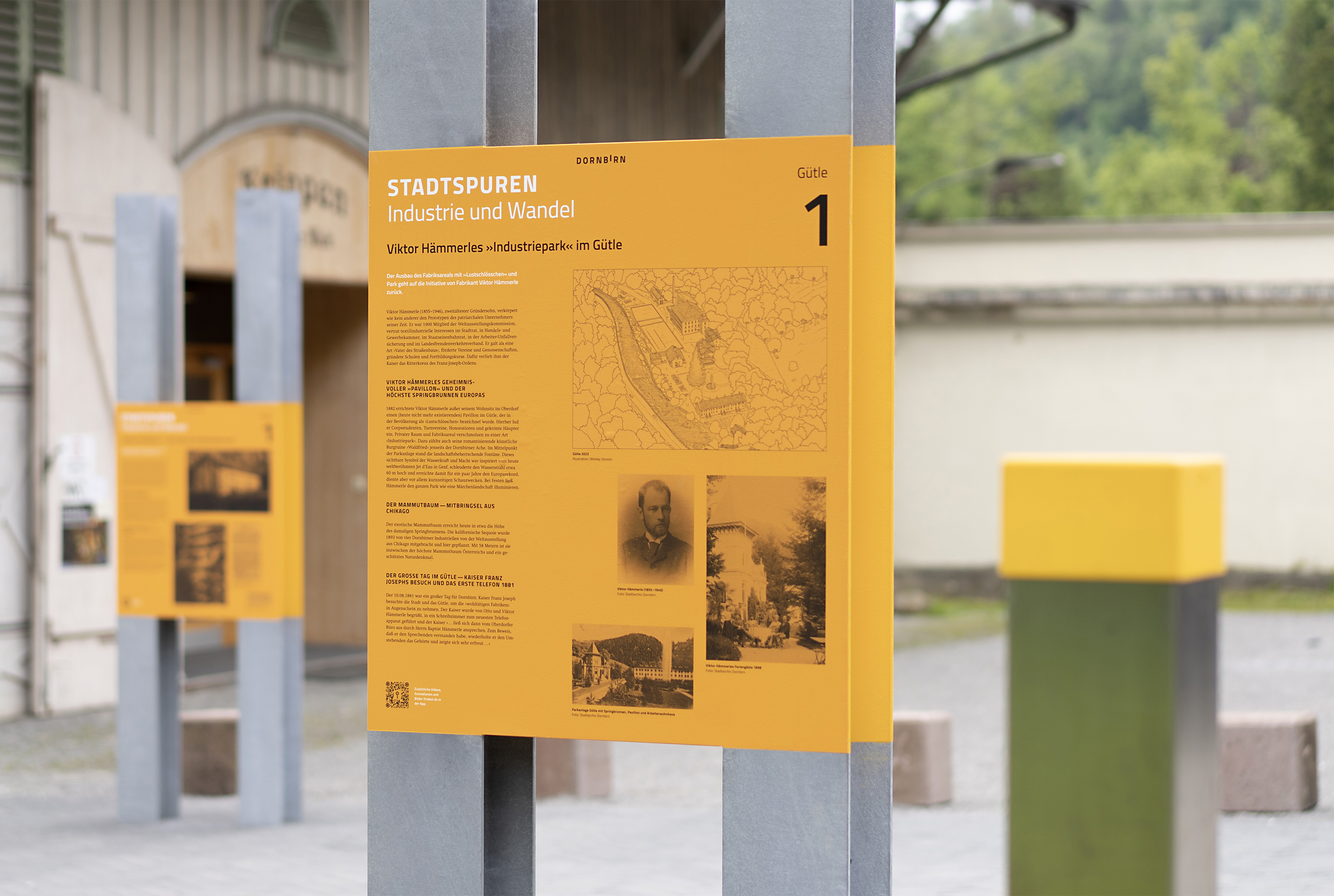 Hintergrund: Unter dem Titel „Stadtspuren. Industrie und Wandel“ sollten in Dornbirn 15 Stationen mit Geschichten über Aufstieg und Niedergang, Kontinuität und Brüche erzählt werden. Ein urbaner Trail entlang historischer Stätten und Objekte.