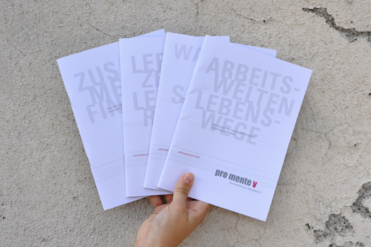Den vierten Jahresbericht in dieser Serie – der vorletzte – hat die Pro Mente V selber gestaltet. Der Bildbeitrag der 2012er Reihe stammt vom Fotografen Martin Mischkulnig. Nächstes Jahr machen wir den fünften in der Runde und dann folgt ein neues Konzept. Wir sind gespannt.