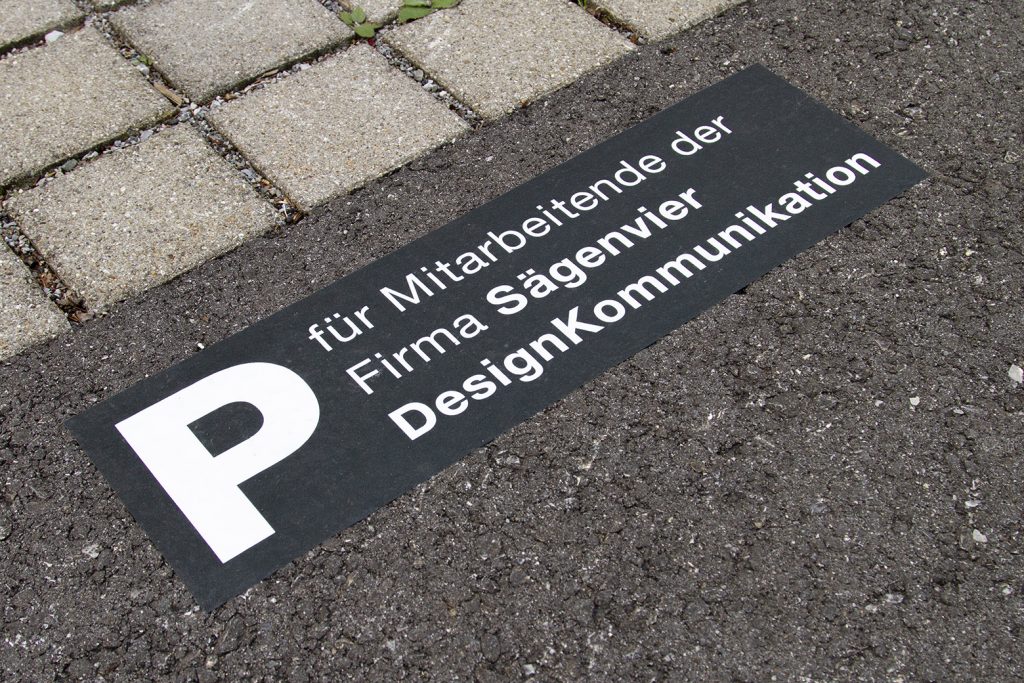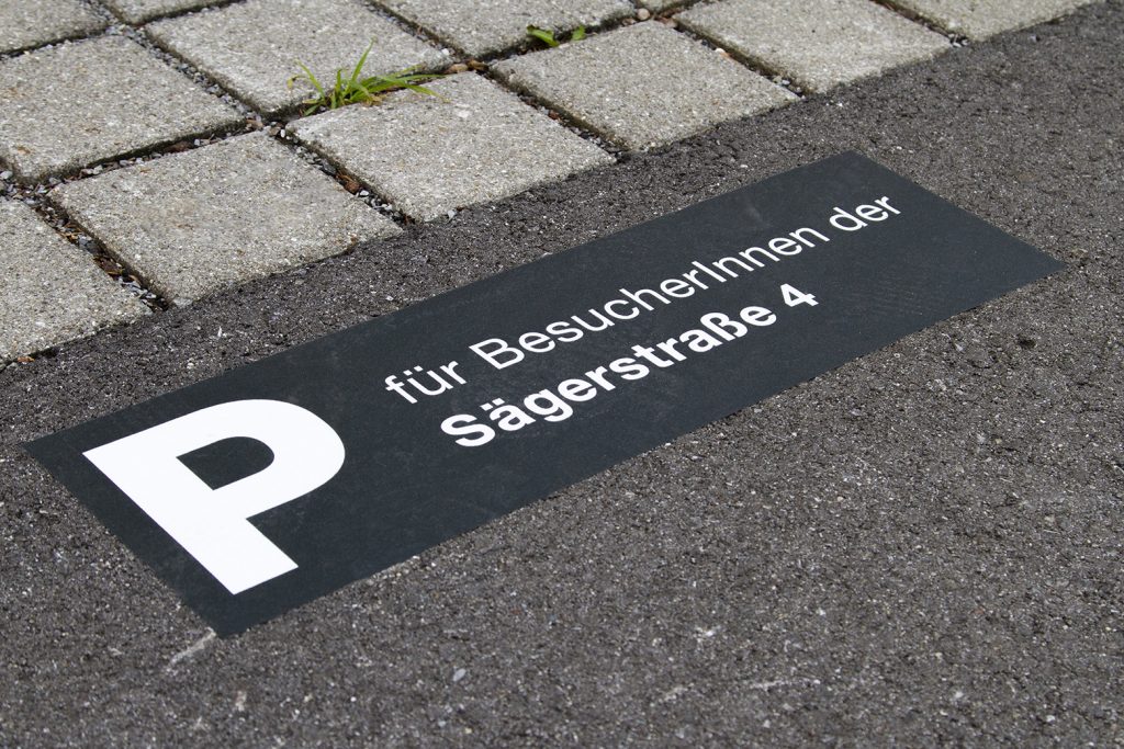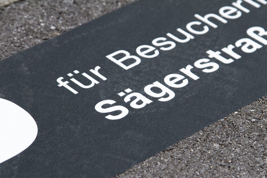 Auch wenn es gegen die Klima-Situation spricht – Parkplätze sind noch wichtig und noch mehr wichtig ist es, daß sie – wenn sie gemietet werden, auch frei sind. Als erste Eigeninitiative der gesamten Signaletik der F.M. Hämmerle Areale haben wir unsere Plätze manifestiert. Mit Folie auf Asphalt – wer hätte gedacht, daß dies hält. Temporär zumindest. Danke an Tina Rhomberg für die Gestaltung. Danke an Maximillian Wenin für die Umsetzung. Weiteres folgt dieser Zeiten.