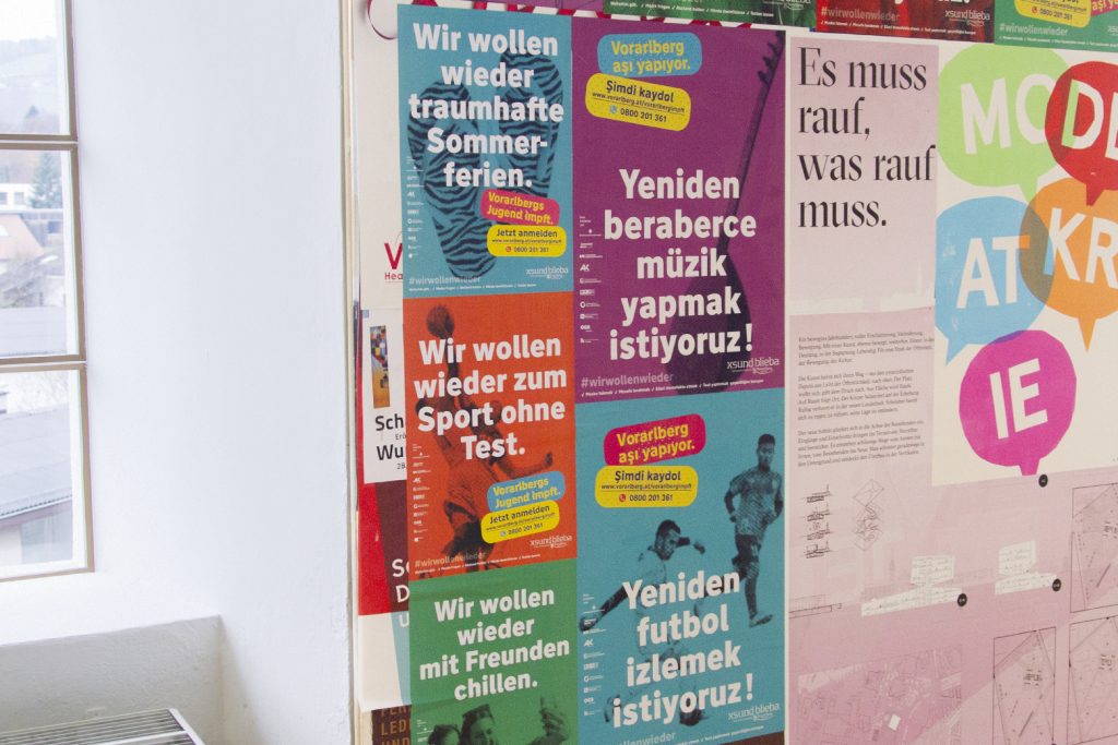 Nach fast 38 Jahren selbstständigem Gestalten wurden wir zum Wettbewerb für die neue Kommunikation ab 2025 eingeladen. Es waren insgesamt 5 Vorarlberger Büros und eines aus Stuttgart eingeladen. Der Auftrag geht nach Stuttgart. Wir gratulieren und sind gespannt, was das Neue bringen wird. Die Einladung und die Arbeit hat uns sehr große Freude gemacht. Danke für das wertschätzende Feedback.