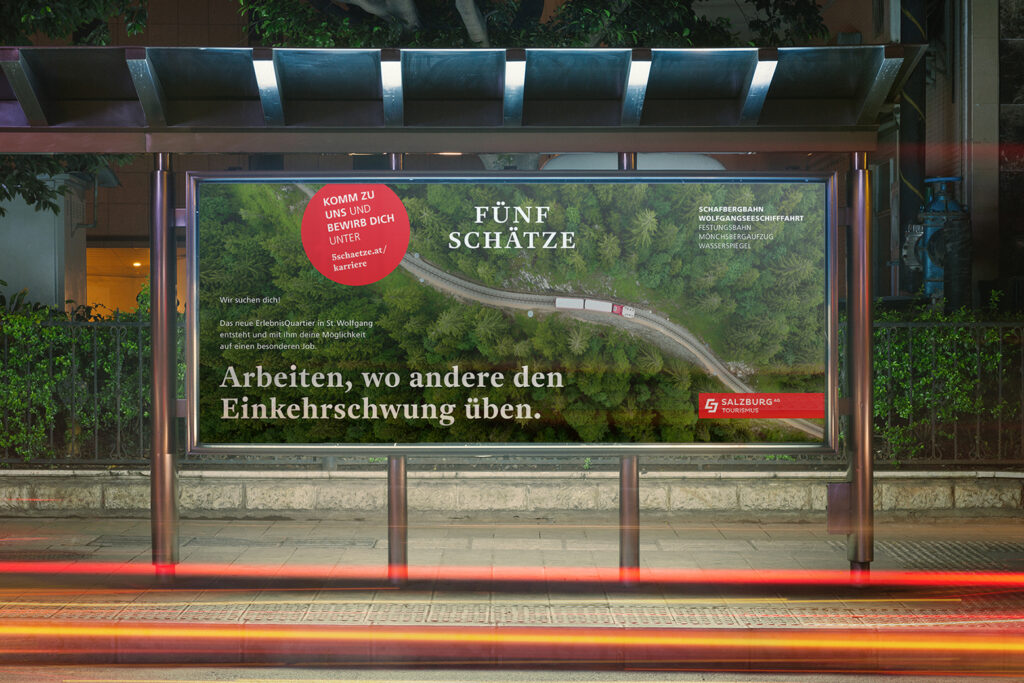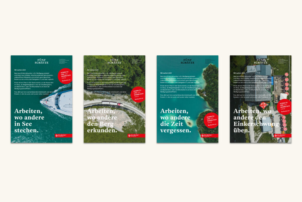 Ja – fast vergessen – für die Salzburg AG Tourismus haben wir diese Employer-Branding-Kampagne gestaltet und es hat sehr viel geholfen. Die gesuchten Mitarbeiter*innen sind dort angekommen, wo sie gebraucht werden. Juhu! Und danke für die vertrauensvolle Zusammenarbeit. Tim Siegel zeichnet für das Grafik Design verantwortlich.