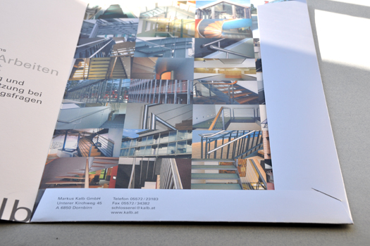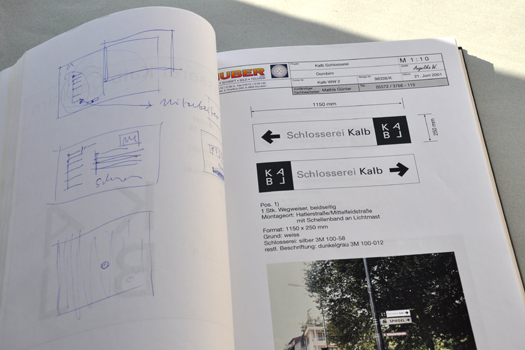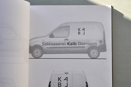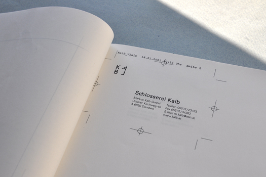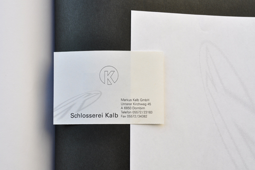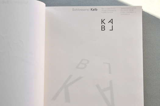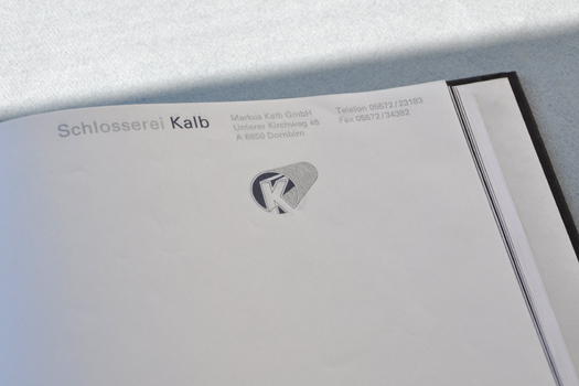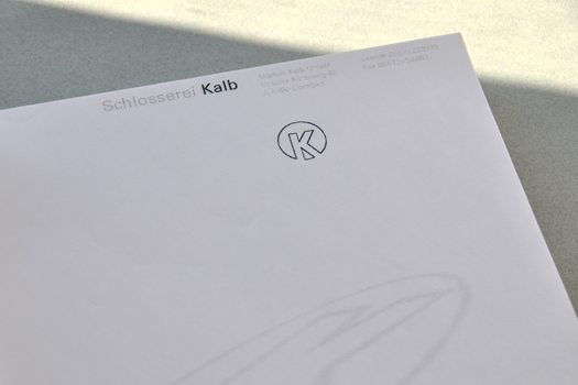 Für Markus Kalb haben wir dieses Corporate Design entworfen. Die Grundidee basiert auf einem Stahlrahmen. Die Buchstaben sind so unüblich arrangiert, daß dieses Bild entstehen kann. Die Lesbarkeit ist völlig wurscht. Die Leute erkennen und lesen den Namen. Die Bautafeln fallen sehr gut auf und Markus wird heute noch auf das auffällige, unübliche und trotzdem schlichte Erscheinungsbild angesprochen. Und, die Schlosserarbeiten werden hervorragend gemacht. Pünktlichst und einfach gut.