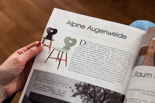 Stefan Amann hat den Text für geschrieben und diese Anzeige gestaltet. Schöne Möbel, schöne Worte, schöne Seite und schöne Fotografie von Adolf Bereuter.