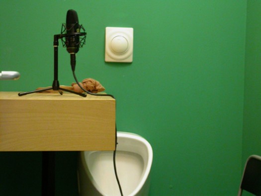 Matt Boroff kam zu uns ins Atelier und fragte, ob wir keinen Sounddesigner brauchen. Wir beschlossen spontan, mit ihm zusammen zu arbeiten. Er hat uns die Gestaltung für die Ohren nähergebracht und dafür haben wir ihm Illustrator, InDesign und das Grafische Gestalten gezeigt. Das Bild zeigt unsere Toilette. Für Tonaufnahmen der ruhigste Ort im Sägenvier. Great Musican, great Design for the ears and for the empathy. Thanks Matt for working together.