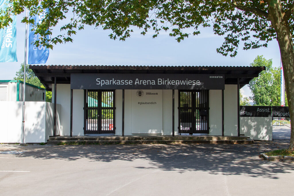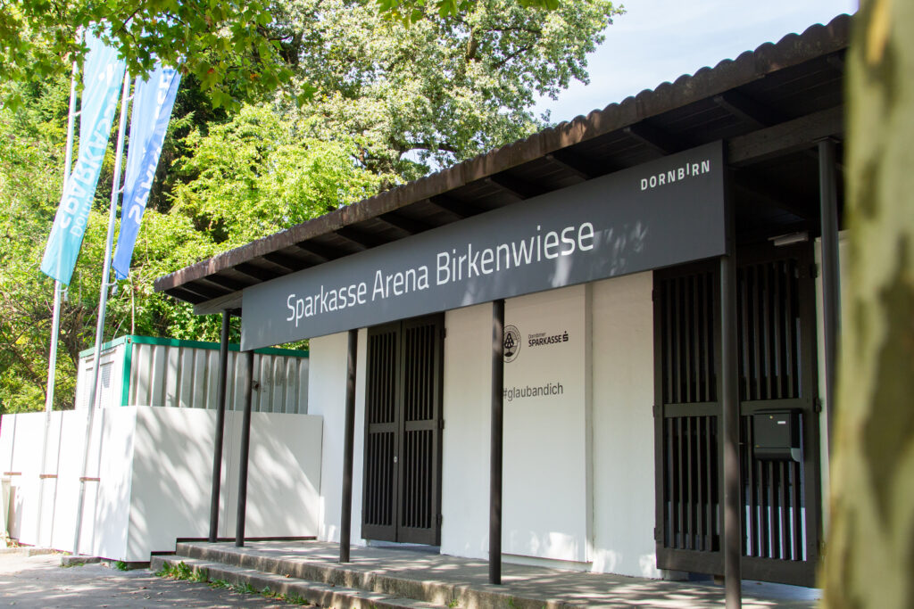 Ja bis das Stadion Birkenwiese so strahlt, wie die Allianz Arena in München wird es noch ein klein wenig dauern. Aber der erste Schritt ist vollbracht. Die Sparkasse Arena Birkenwiese Dornbirn ist geboren. Ein bisschen haben wir die Eingangssituation aufgemöbelt und einen ersten Teil der Neugestaltungen umgesetzt. Erwin Kamoglu zeichnet für das Design verantwortlich. Und wir danken den Verantwortlichen für die Offenheit und Flexibilität in Bezug auf die einzelnen CD-Vorgaben. Jetzt kann die Saison beginnen.