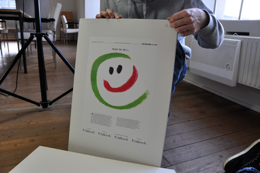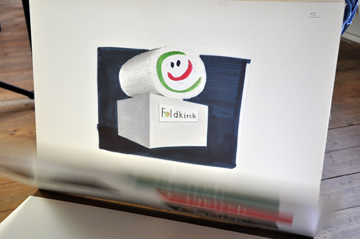 Ich war völlig überzeugt, für die Stadt Feldkirch das absolut richtige und beste Corporate Design Programm zu erfinden, daß es in ganz Mitteleuropa je gegeben hatte. Sagen wir mal konzeptiv war es auch sehr gut. Ich wies sogar in meiner Einreichung darauf hin, daß Feldkirch diese lachende, fröhliche und positive Logotype sich erst dann verdient heie, wenn sich die Menschen und zwar alle BewohnerInnen akzeptiert und wohl fühlen können. Also damals war ich noch ziemlich rosarot bebrillt. Aber letztlich hat das fröhliche Häuschenlogo von Roland Schuster gewonnen. Darüber war und bin ich auch sehr froh und Feldkirch ist ja eine sehr freundliche und wohlwollende Stadt. Prima.