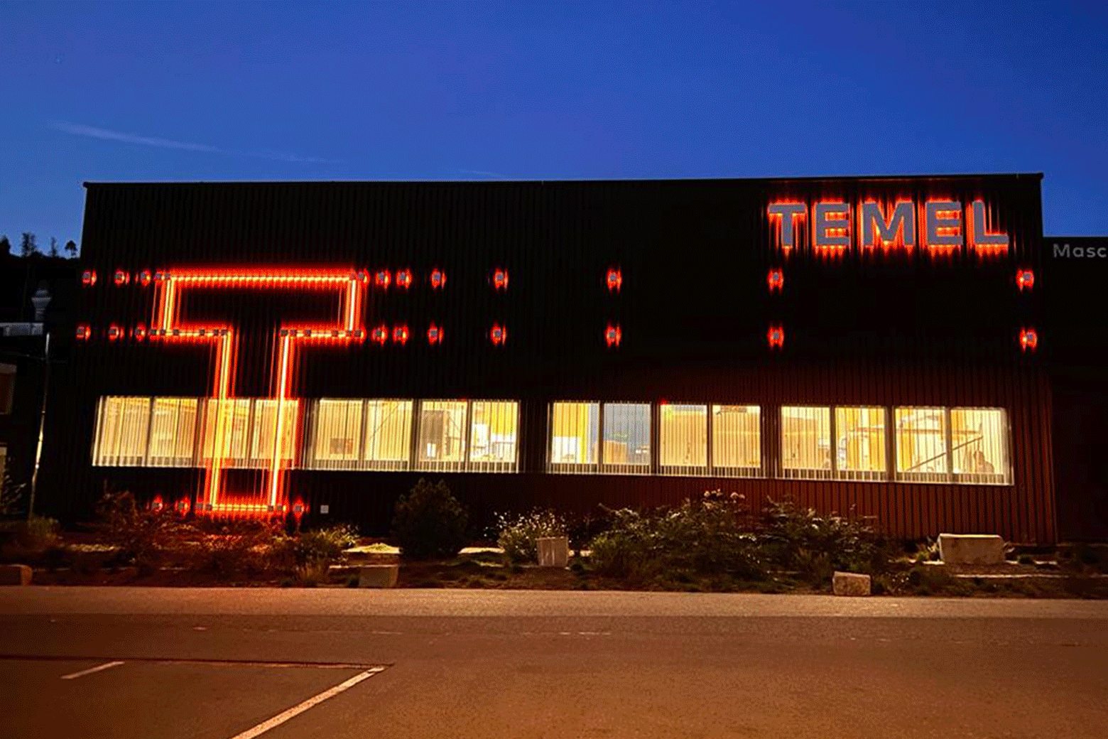Dies sieht schon fast aus, wie in Las Vegas. Bei einer so befahrenen Straße darf es auch mal lauter wirken, wobei die Farben nur temporär für besondere Anlässe eingesetzt werden. Sonst leuchtet die Fassade in schlichter Ausstrahlung. Wir durften anlässlich des Neubaues auch das gesamte Corporate Design neu gestalten. Danke an die Familie Temel für die Beauftragung und danke an Benjamin Midl für die Elektroinstallation und an die Schlosserei Kalb für die Buchstabenmontage.