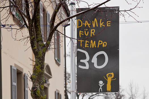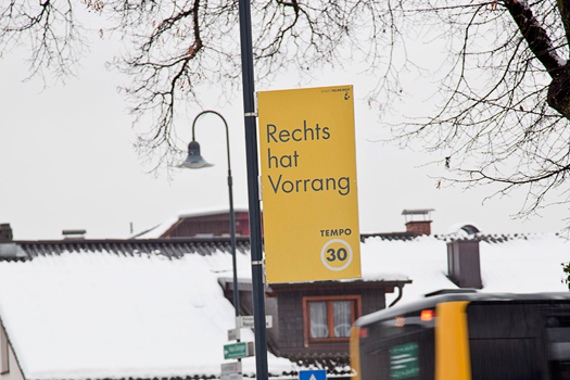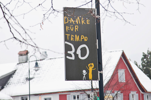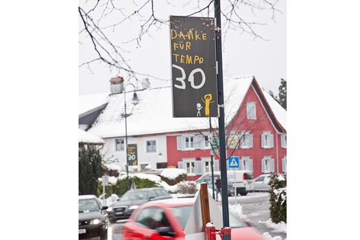 Mit Stefan Marte zusammen habe ich diese Schilder kampagne gestaltet. Wir entschlossen uns, auf der einen Seite der Schilder mit Kinderzeichnungen und Kinderschrift mit den AutofahrerInnen zu kommunizieren und auf der anderen Seite die pragmatische Information anzubringen. Insgesamt ein mutiger Schritt der Stadt Feldkirch, denkt man an die Dynamik der Autofahrerpartei in der Schweiz in den 90iger Jahren. Also Tempo raus im Stadtverkehr.
