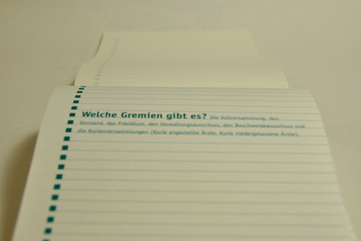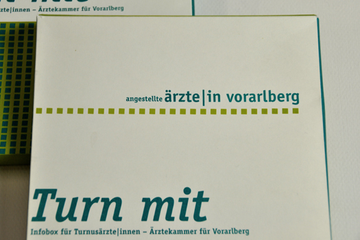 Das ist ja einer der anstrengendsten Jobs, die es gibt. Deshalb haben wir der Ärztekammer ein motivierendes und lustiges Willkommenspaket empfohlen. Eine Alternatividee statt dem Notizblock mit Bewegungstipps war auch ein Springseil. Aber dies war den Doktoren dann doch etwas zu übertrieben. Also turn on. Übrigens Sabine Sowieja hat die Gestaltung gemacht.