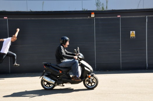 Eine Errungenschaft für unser Team ist der coole mattschwarze Kmyco Roller. (Vespa würde besser klingen, ich weiss schon) Für schnelle Einkäufe und Drucküberwachungen im Nahbereich. Laufen, Fahrrad- und Busfahren gehört eh zum Mobilitätskonzept von Sägenvier. Das CarSharing Auto holen wir auch manchmal aus der Garage. Alles einsteigen, bitte.
