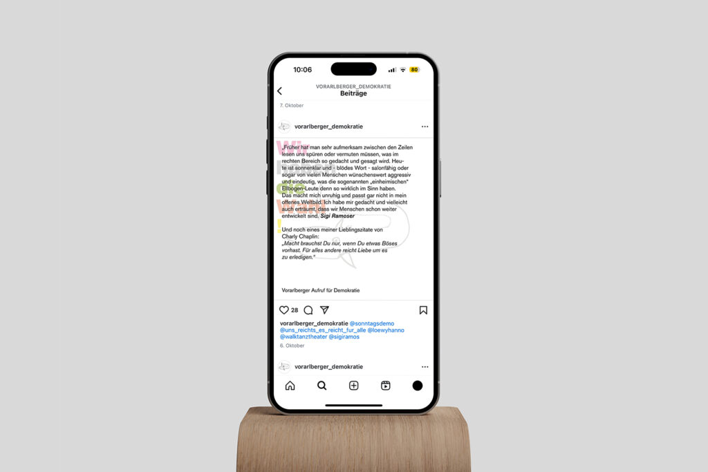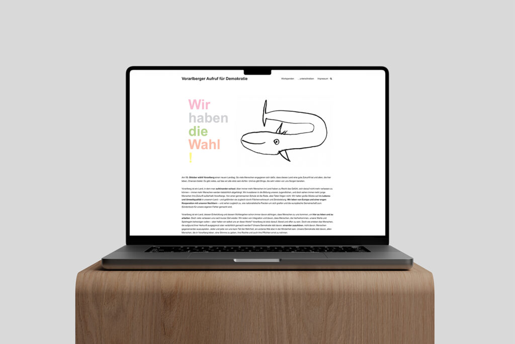 Carmen Feuchtner, Brigitte Walk, Hanno Löwy, Johannes Lusser, Michael Köhlmeier, Roland Gnaiger und ich haben den Aufruf für die Vorarlberger Demokratie gestartet und bis zur Landtagswahl über 2.500 Unterstützer*innen zur Unterschrift unserer Petition motiviert. Diese haben wir den Verantwortlichen der Parteien im Landhaus übergeben und werden jetzt sehen, wie es nach der Wahl weiter geht. Den Wa(h)lfisch hat uns mein Enkel Levi Thiago gezeichnet. Der Wal ist weltweit und schon soooo lange unterwegs und weiss sehr viel über die Welt und symbolisiert den klugen Blick auf die Dinge, die geschehen…