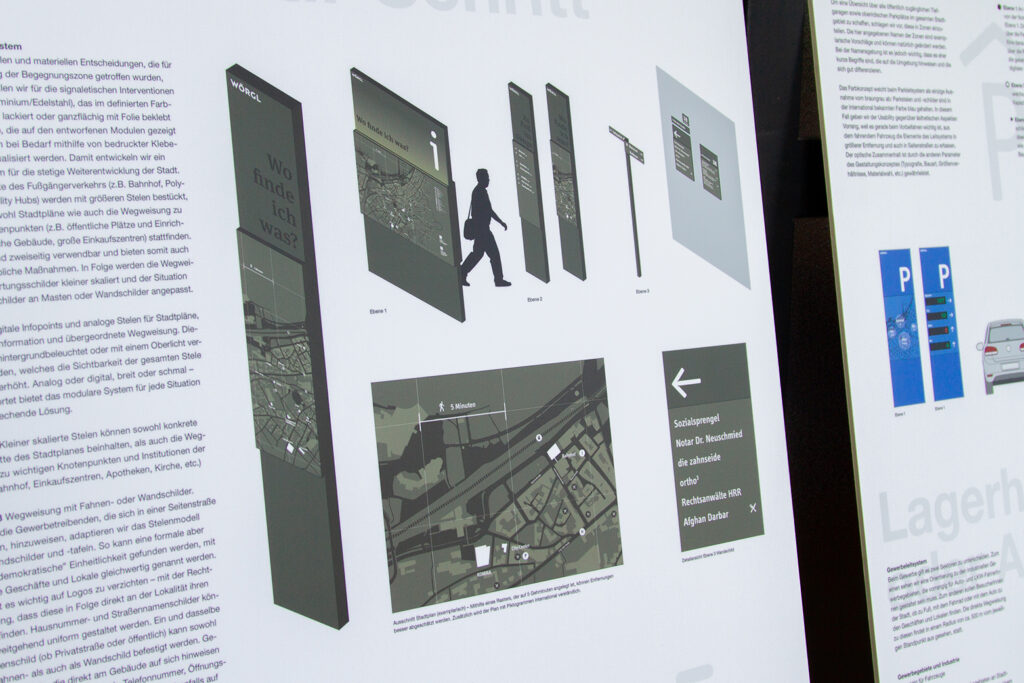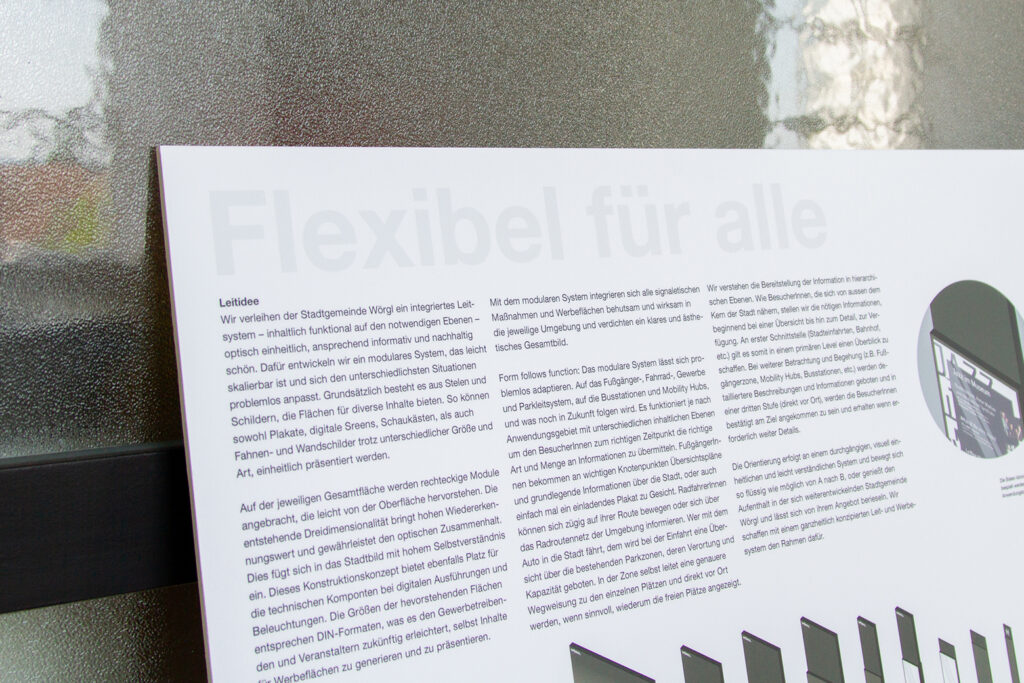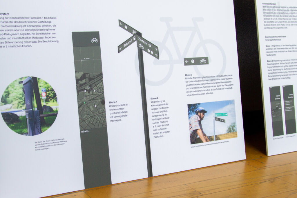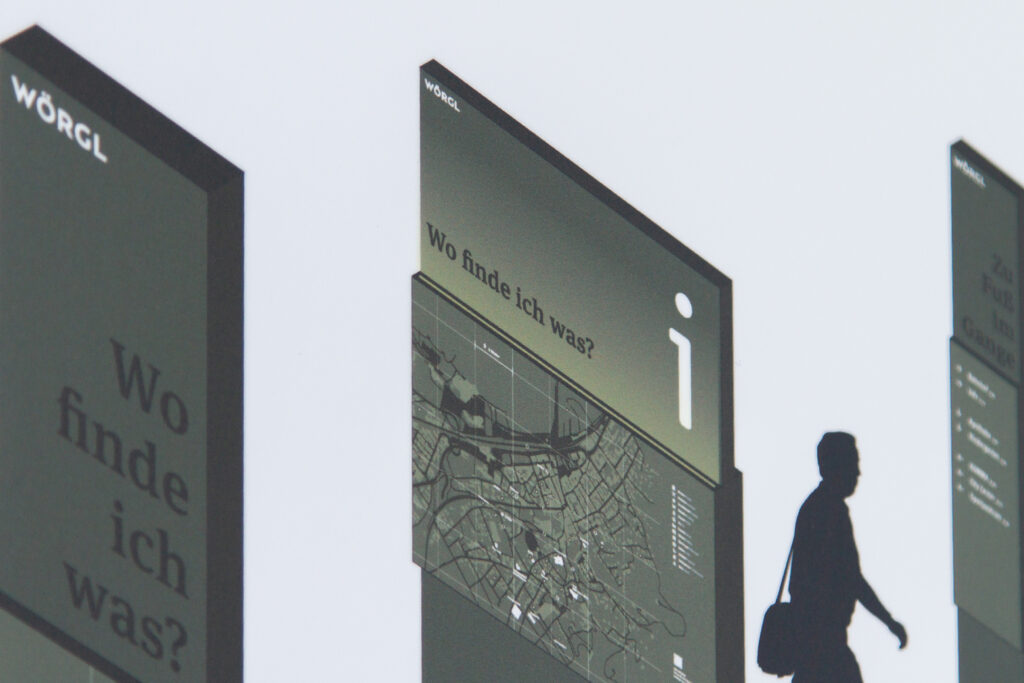 Über die vorbildlich begleitete Ausschreibung vom Weissraum in Innsbruck wurden wir zum Wettbewerb geladen und siehe da – wir haben einstimmig gewonnen. Die Stadtgemeinde Wörgl wollte wissen, wie könnte eine komplette Beschriftungskonzeption einer Kommune aussehen, wenn alles neu gedacht und gestaltet wird. Vom Parkleitsystem über die Fußgänger und Fahrradwege bis zu den Betrieben, Geschäften und allgemeinen Infrastrukturinformationen für die Bewohner*innen und Gäste einmal alles in einem guten und wiedererkennbaren System zu denken war sehr herausfordernd und gleichzeitig spannend. Im Einzelnen haben wir in der Säge schon alles gestaltet – im Gesamten durften wir hier nun unsere Expertise einbringen. Lisa Fink und Tim Siegel und der Rest unseres Teams haben wunderschön gedacht und zusammengeführt, was zusammen gehören kann. Wir sind gespannt, wie es weiter geht und danken allen Beteiligten für diese tolle Aufgabenstellung. Und die Präsentationspappen sind auch wieder mal charmant in der digitalen Flut. Eine Ausstellung im Weissraum Innsbruck mit allen Wettbewerbseinreichungen ist geplant. Wir informieren, wenn es soweit ist.